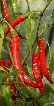 Fine modne chili klar til høst – de her er så tynde, at de kan tørres. Foto: Karna Maj