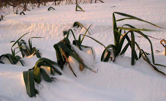 Vinterporrer kan godt klare sne og frost, men det kan være svært at få fat i dem, hvis jorden først er frossen, eller de dækkes med sne. Foto: Karna Maj