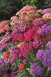 Rølliker fås i mange nuancer og her et fint mix i Achillea millefolium Flowerburst Red Shades F2 Foto: Frøtorvet