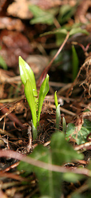 Det gryende forår er ikke kun bristede knopper og vintergækker og erantis i fuldt flor. Hvis man går en tur rundt i haven og ser godt efter, kan man finde mange forårstegn. Et sikkert forårstegn er påskeliljeknopper på flere centimeter høje stilke. Tulipaner, som lskyder op som rødlige spidser af den våde jord. Persillen, der sætter nye fine blade mellem de slatne vinterblade. Sankthansurtens små fine skud. De fine grønne blade af ramsløg, som er en forårsdelikatesse i noma-stil. De grønne blade af dansk arum, som bestemt ikke skal spises. Skovtulipanerne, hvis små spidse blade er på vej op. Pastinak, som allerede skyder nye ret så grønne blade.