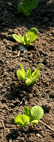 Salatplanterne skal være lidt større, inden de kan plantes ud. Det er ofte lettere at så direkte på friland. Foto: Karna Maj