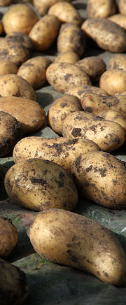 Har man flere kartofler end man kan nå at spise de næste par måneder, bør de tages op, tørres godt i solen en hel dag og gemmes væk, inden det bliver efterårsvejr med dårligere mulighed for at få dem gennemtørret i solen. Foto: Karna Maj