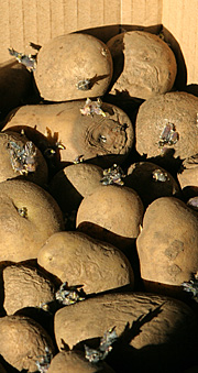 Kontroller læggekartoflerne, når de købes – der må ikke være alt for mange syge og dårlige kartofler i en pose læggekartofler. Sorter evt. dårlige fra med hård hånd, så der ikke kommer rådne kartofler med til spiring. Foto: Karna Maj