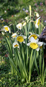 Lige nu springer påskeliljerne ud – mindst tre uger senere end normalt. For håbentlig får vi lidt mere glæde ud af dem, end de yndige blå krokus, der lige var nået at komme i flot blomstring samtidig med, at vi i sidste uge havde tre sommerlige forårsdage, som nærmest fik dem til at visne fra dag til dag. Vi venter stadig på de første blomstrende tulipaner, på den gule gemserod, vibeæg og alt det andet, som plejer at blomstre lige nu. Kærmindesøster og lungeurt er dog nu på vej.