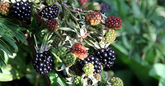 Det allerbedste bær lige nu er dog brombærrene, som er ved at være modne. Søde og dejlige, ikke mindst friske og solvarme. Farven sort er dog ikke ensbetydende med modne og søde bær. Mange mener, at de tornfri brombær er mindre søde, men som regel er det, fordi sorterne skal sidde og modne et stykke tid efter, at de er blevet sorte, mens brombær i naturen som regel er nogenlunde modne, når de bliver sorte.