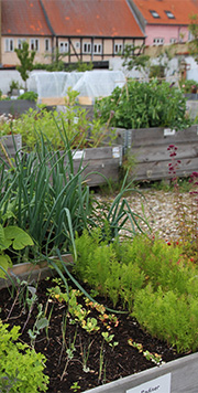 Grow Your City i Fredericia er et område med højbede, hvor borgerne kan leje et antal kasser til at dyrke både grønsager og blomster i. Det er også mulighed for at leje en kasse i den store dome. Billedet er fra juni 2014, hvor alle kasserne var fyldt med frodige planter. Foto: Karna Maj