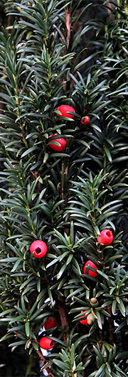 Tak er meget velegnet til hække i haven og fritvoksende stedsegrønne buske. Men det er en giftig plante, især for heste, som kan dø af at spise selv små mængder taks. De smukke røde bær er giftige, og de bør fjerne i børnehøjde, indtil børnene kan forstå, at de ikke må spises. Foto: Karna Maj