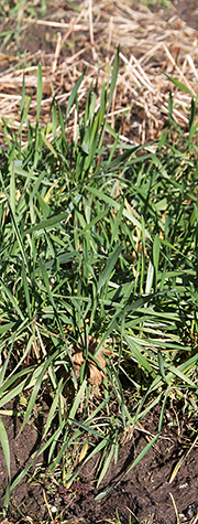 Stauderugen har dannet et godt og tæt plantedække vinteren over og beskyttet jorden godt. Nu vil det vise sig, hvor let/svært det er at hakke den om her i marts. Måske er det bedre at grave den grønne top ned, ligesom med en græsplæne, hvor der skal etableres nyt bed. Foto: Karna Maj