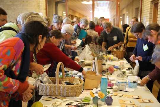 Ved festivalen var der også frø-bytte; hvilken vidunderlig overflod! Jeg nød at gå rundt om det store bord og se på alle de fantastiske frø. Der var også mange fine hjemmelavede frøposer, smukke håndskrifter og bare et glas med påskriften »Smuk sommerblomst, hvid«, ja, så er det jo bare at prøve det.