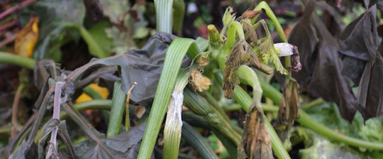 Så kom frosten og tog livet af det sidste. Det er helt utroligt som en plante kan strutte den ene dag og være helt splattet den næste.