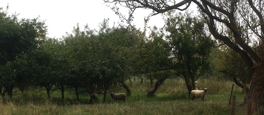 Får under æbletræerne giver god mening, så bliver græsset slået, der kommer gødning og kød. 3 X win.