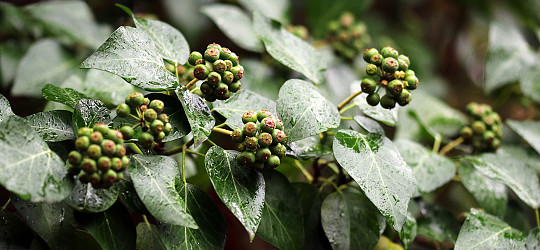 Vedbend kan effektivt dække mindre tiltalende steder af haven året rundt. Det er også en god plante i forhold til fuglene, der blandt andet spiser de flotte frøkugler. Foto: Heidi Kirk Nissen