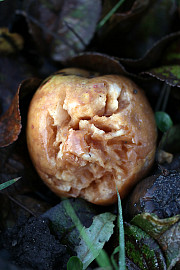 Fuglene i haven er godt i gang med at få ryddet nedfaldsæblerne af vejen. Foto: Heidi Kirk Nissen