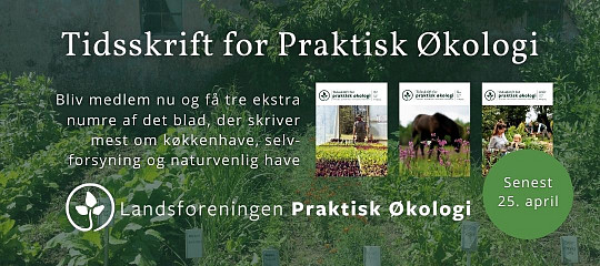 Meld dig ind i Landsforeningen Praktisk Økologi senest 25. april og få 3 ekstra numre af »Tidsskrift for Praktisk Økologi« + seks nye numre leveret i din postkasse i løbet af de næste 12 mdr.