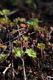Der er mange små, nye skud på vej frem, hvis man kigger godt efter i staudebedet. Her er det storkenæb Rozanne. Foto: Heidi Kirk Nissen
