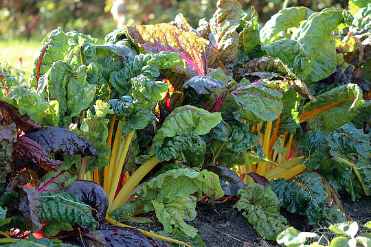 Det er ikke kun blomsterne og det gyldne efterårsløv, der gør oktoberhaven farverig. Har man en række bladbeder i forskellige farver, er de også med til at bringe lidt spræl ind i den ellers så grønne køkkenhave. Foto: Heidi Kirk Nissen