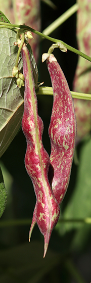 De sidste overmodne bønner får lov til at sidde, indtil der er dannet store friske bønnefrø De bælges let, når bælgen bliver blødere, og bønnefrøene er lækre kogte og afkølede i salater eller i varm mad. Foto: Heidi Kirk Nissen