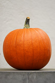 Et klassisk orange græskar til at lave en lygte af. Men man kan lige så vel bruge hvide, blågrønne eller mørkegrønne græskar, og også dem der er aflange, knudrede eller kalabasformede. Der findes mere end 700 græskarsorter, så man kan nemt dyrke nogle, der er andet end orange og runde. Foto: Heidi Kirk Nissen