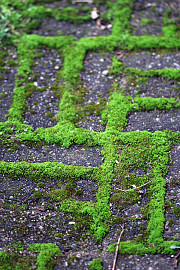 Mos er ikke nødvendigvis et problem. Det er blødt at gå på med bare tæer om sommeren, og det giver en dekorativ effekt her mellem fliserne. Foto: Heidi Kirk Nissen
