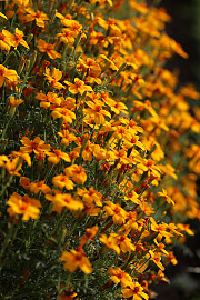 Tagetes lyser op i haven her i oktober. Her er det appelsintagetes, hvis blomster er smukke drysset over toppet af en salat. Foto: Heidi Kirk Nissen