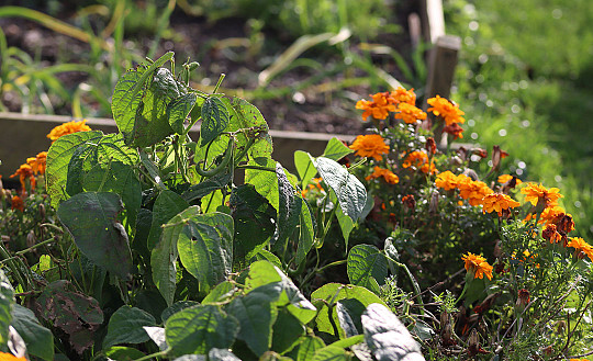Bor man i de mildeste egne af landet, kan man være heldig stadig at kunne hente de sidste bønner og nyde synet af sommerblomster som tagetes. Foto: Heidi Kirk Nissen