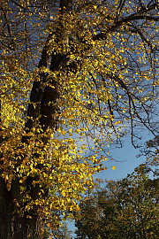 Haverne farves stadig gyldne og røde af efterårets smukke blade her i november. Mange er faldet af, og de dækker nu bede og græsplæne, og de skal endelig have lov at blive i haven, hvor de beskytter jord og planter mod vinterens kulde.