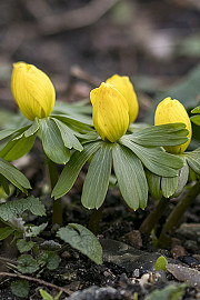 Det er skønt at se, hvordan erantis giver noget tiltrængt farve til en have, der stadig overvejende er grå, brun og mørkegrøn. Foto: Heidi Kirk Nissen