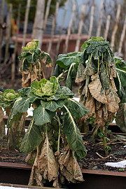 Rosenkålen hænger fortsat lidt efter februars vintervejr. Foto: Heidi Kirk Nissen