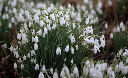 I gamle haver er der også store blokke af vintergækker med løg i flere etager. De er flotte, men venter på at blive delt og givet til nye haver, hvor der måske ingen eller kun få vintergækker er. På den måde kan man sprede glæden over de smukke hvide vinterblomster.