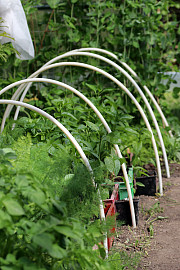Buer af for eksempel elektrikerrør er gode at bruge i drivhuset til at lægge lag af fiberdug over planter, når det bliver lidt køligere, end de foretrækker. Foto: Heidi Kirk Nissen