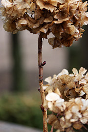 Hortensiabuskene har fine knopper på vej. Men de er frostfølsomme, så lad være med at klippe de visne blomsterskærme af endnu. De danner en beskyttende skærm på nætter med frost. Foto: Heidi Kirk Nissen
