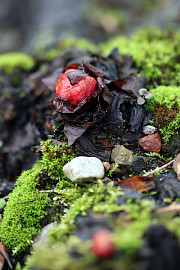 Knaldrøde knopper midt i alt det brune og grønne varsler forår og rabarber, der snart er på vej. Foto: Heidi Kirk Nissen