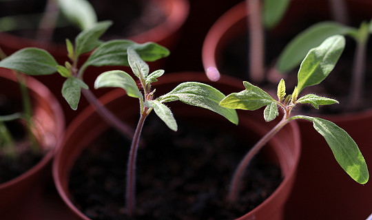 Tomatplanter vokser hurtigt, og man skal være klar til at prikle og ompotte løbende, så planterne hele tiden har nok plads at vokse på. Foto: Heidi Kirk Nissen