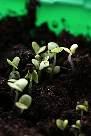 Nogle gange spirer ens frø overraskende godt, så de kommer lidt for mange op. Man kan forsigtigt med en neglesaks klippe nogle af dem af. Det er mere skånsomt for de resterende planter fremfor at hive dem op ad jorden. Foto: Heidi Kirk Nissen