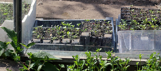 Når nattefrosten er væk, skal der hurtigt gang i forkultiveringen i drivhuset af alle udplantningsplanterne til køkkenhaven og en del sommerblomster. Heldigvis kan det meste spire ved de temperaturer, der kan opnås i drivhuset. Foto: Heidi Kirk Nissen