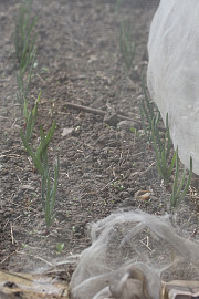 Sætteløg af rødløg kan dyrkes under fiberdug for at beskytte en smule mod frostnætter og dermed sænke risikoen for stokløbning. Foto: Heidi Kirk Nissen