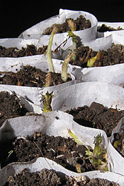 Valsk bønne, også kaldet hestebønne, spirer fint i en lidt kold jord, så de kan godt sås nu.