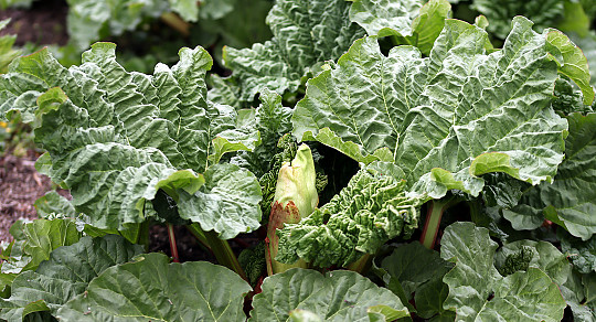 Rabarberne er i fuld gang. Nogle af dem lægger også allerede an til blomsteringen. Man kan fjerne knoppen og dermed give mere energi til at producere bladene med de eftertragtede rabarberstængler. Foto: Heidi Kirk Nissen