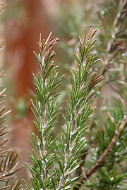 Rosmarinen har fået lidt visne spidser i løbet af vinteren, men den er begyndt at sætte nye skud, så den skal nok klare sig. Foto: Heidi Kirk Nissen
