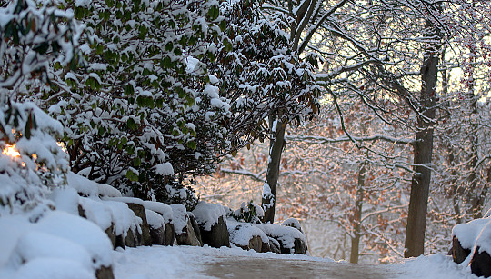 Det har været en flot tid med sneen, der har pyntet haverne. Særligt på dage med sol. Nu venter lidt mildere og mere gråt vejr dog forude. Foto: Heidi Kirk Nissen