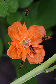 Man kan også tænke insektlivet ind, når man vælger planter. Her er det skovvalmue, der tiltrækker svirrefluer. De er vigtige bestøvere, og deres larver æder bladlus. Foto: Heidi Kirk Nissen