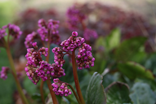 Kæmpestenbræk er en af de stedsegrønne stauder. Den kan begynde at blomstre allerede i marts. Foto: Heidi Kirk Nissen