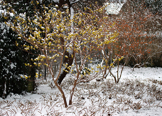 Selvom sneen sine steder i landet dækker haven helt, så smelter den igen, og så har man igen udsigt til vinterhaven.