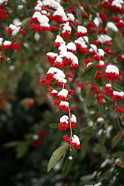 Når man går tur, kan man kigge nysgerrigt ind gennem de bladløse hække og finde inspiration til sin egen have. Det lille træ kvalkved med de røde bær vil være et flot syn i en vinterhave. Foto: Heidi Kirk Nissen