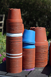 Hvis man i løbet af året gemmer de potter, man får planter i, kan man skaffe en del til forkultiveringen. Foto: Heidi Kirk Nissen