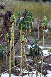 Kålen ser ikke så godt ud længere. Nogle planter må opgives, mens andre får chancen for at vokse lidt videre og give delikate kålskud i løbet af foråret. Foto: Heidi Kirk Nissen