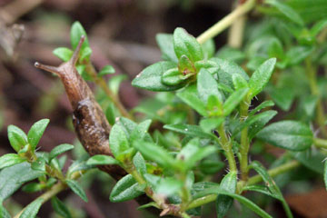 Italiensk timian med oreganosmag og -duft – og snegl. Foto: Karna Maj
