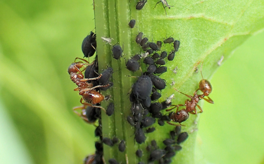 Bedebladlus er en af de få arter, som man kan finde på mange planter. De passes af myrer. Foto: Bjørli Martha Lehrmann