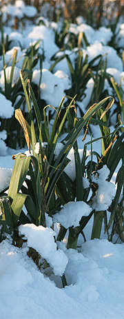 Vinterporrer klarer fint både frost- og sne. I frostperioder kan de være umulige at grave op, men et godt snedække virker isolerende. Foto: Karna Maj