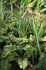 Rødebede bliver ikke så stor, så den kan dyrks i mellemrækker. Her et bed i Den Økologiske Have med rødbeder og porre. Foto: Karna Maj